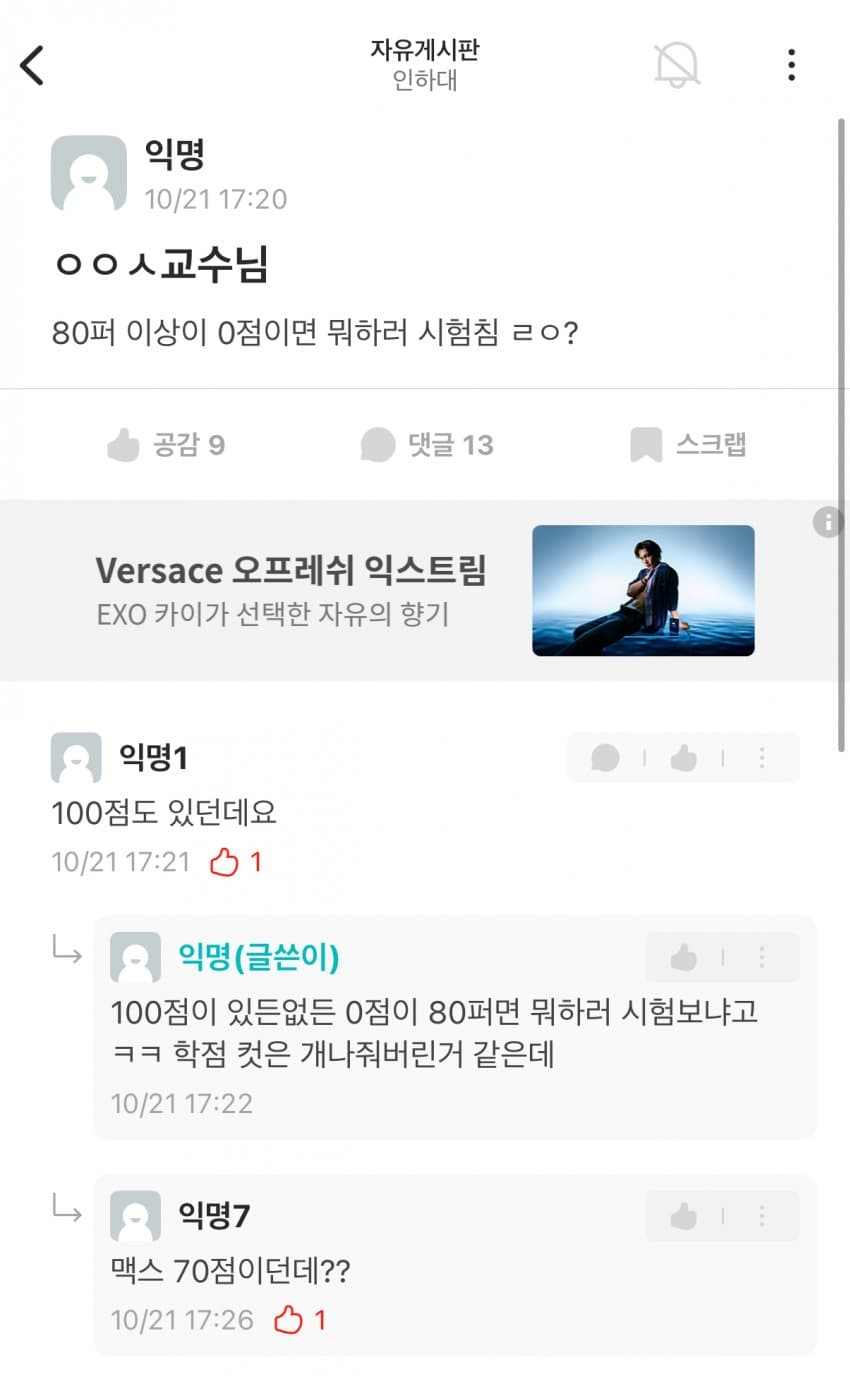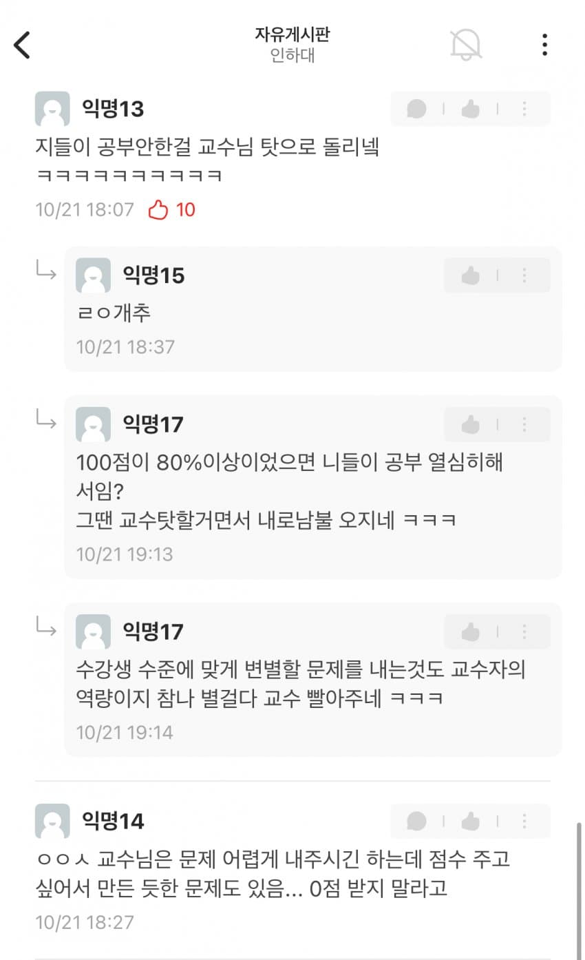 비명문대에서 시험 어렵게 내면 강의평가 테러당하고 에타에서 교수가 욕먹는다