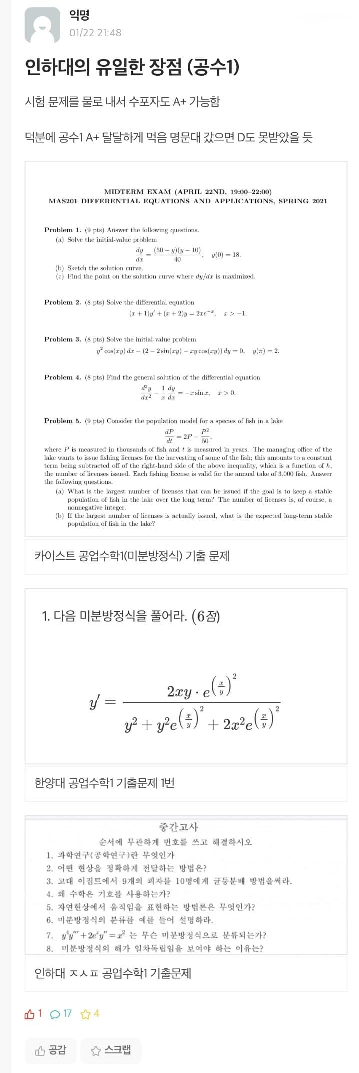 예를 들어 카이스트나 한양대 같은 명문대에서는 시험 문제가 영어로 심화 문제 위주로 어렵게 나온다면