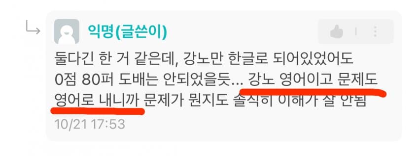 심지어 영어로 냈다고 찡찡거리는 애들도 있다