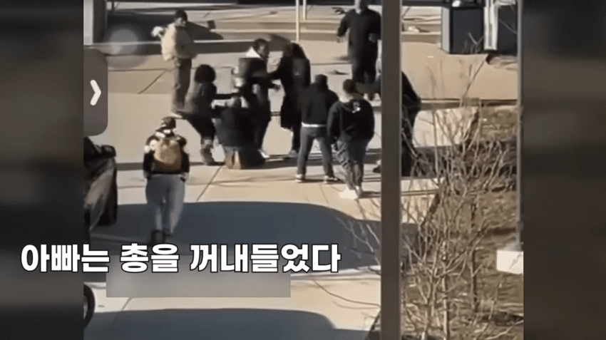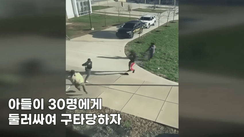 저 장면 이후 가해자가 아버지의 머리에 사커킥을 날린다..