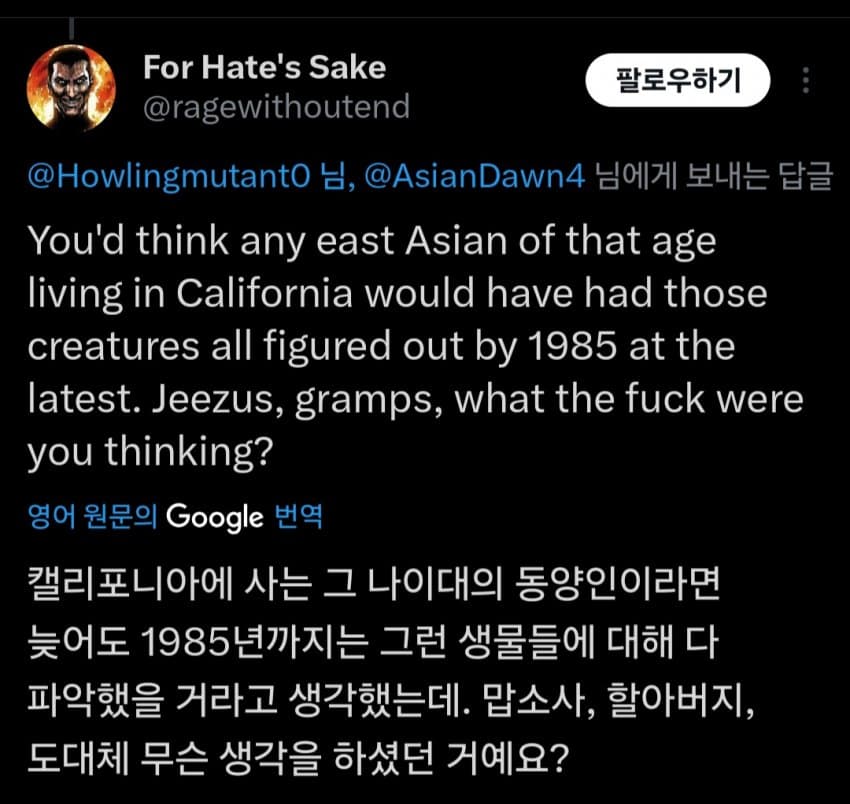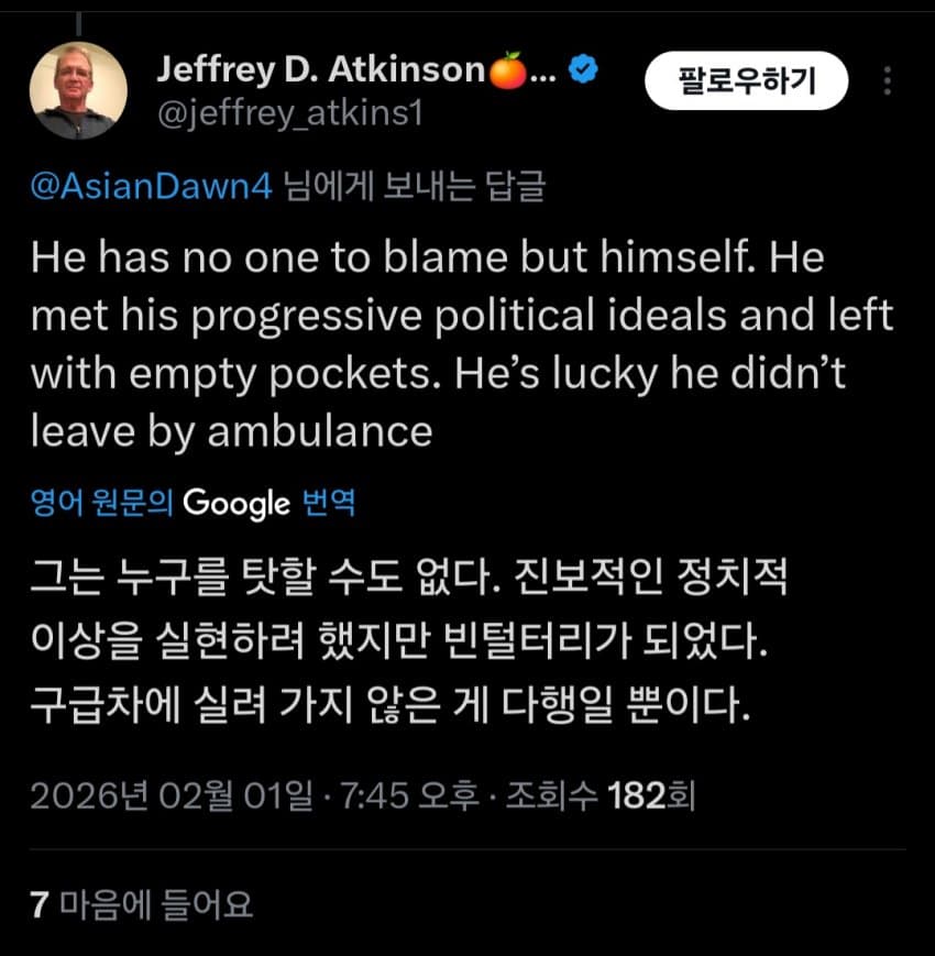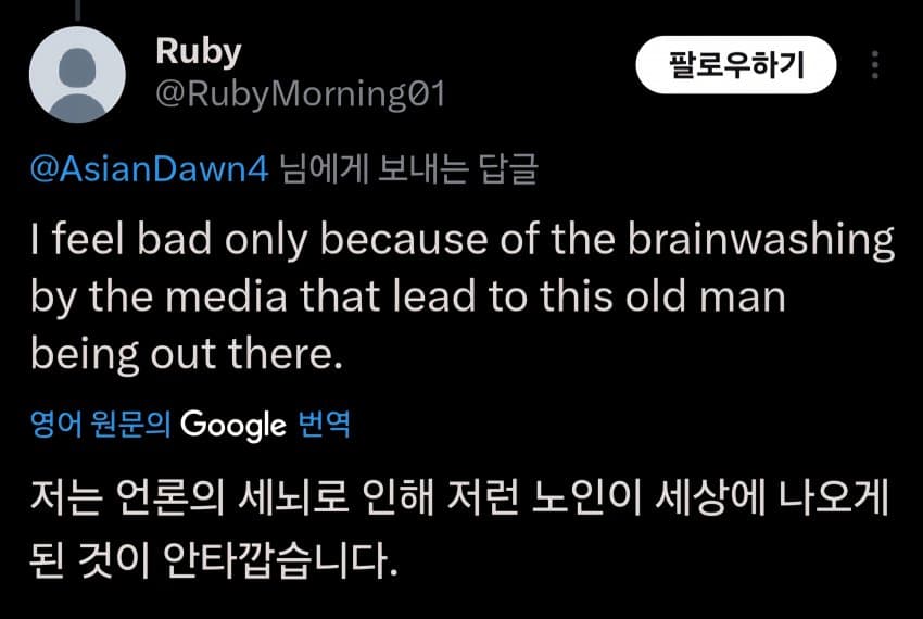 정말 저 나이 먹도록 미국에 살면서 저렇게 될 거라는 걸 예상 못하고 저기 나간거면 스스로 불러온 재앙임 ㅋㅋ