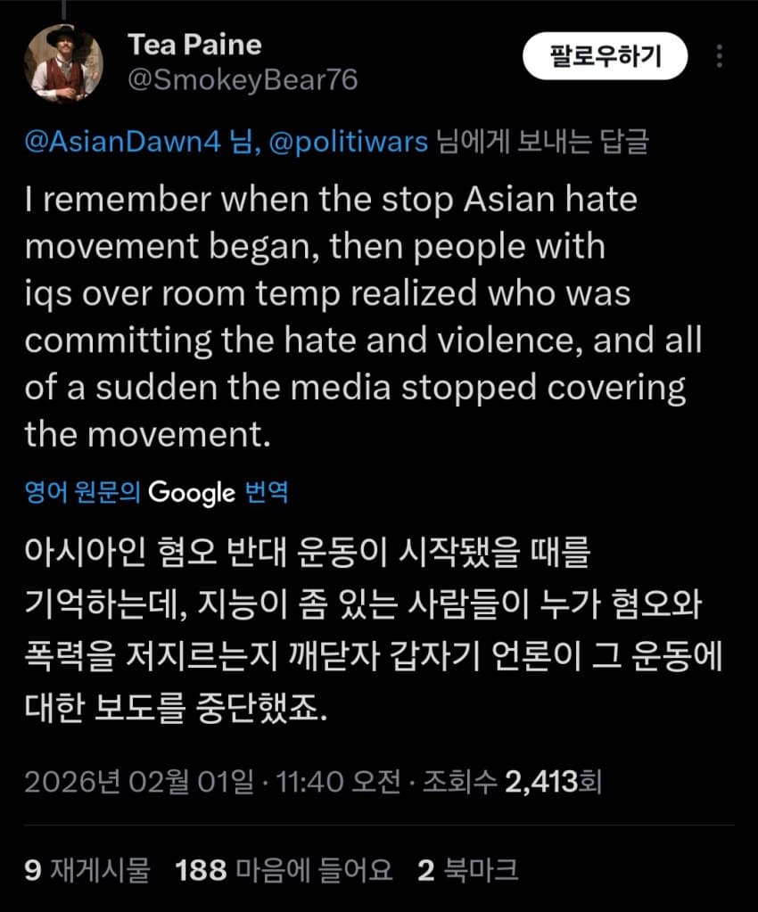 미국 내에서 '아시아계 혐오 반대 운동' 같은 거 하려면,인디언Native American 쪽 사람들 중심에 세워놓고 해야됨.그렇게 해야, 미국의 역사를 기반으로 하는 정당성이 확보가 된다.일본, 중국, 한국 이런 사람들 세워두고서 아시아계 혐오 반대 운동을 하면, 무시하기가 쉬운데 ㅋㅋ인디언Native American 쪽 사람들 세워두고 하는 건, 미국이 직면해야 하는 역사가 되어버리기 때문에 무시 못한다.'테쿰세의 저주' 같은 것도 지금까지 전해질 정도인데, 인디언Native American 쪽 사람들을 존중하지 않으면, 미국 입장에서는 대의명분이 없어져버리기 때문임