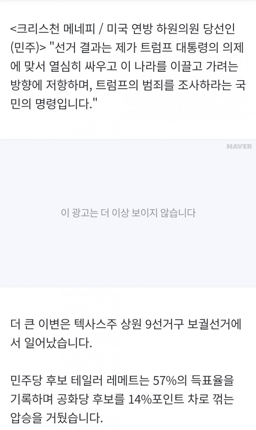 근데 머가 문제인데 흐린눈하냐?본문에도 18선거구는 민주당 우세 지역이라고 적혀있는데? 뭐가 선동임? 이변이 발생한 9선거구가 공화당 우세 지역인데 뺏겼다고 적혀있고 기사에 틀린말이없는데