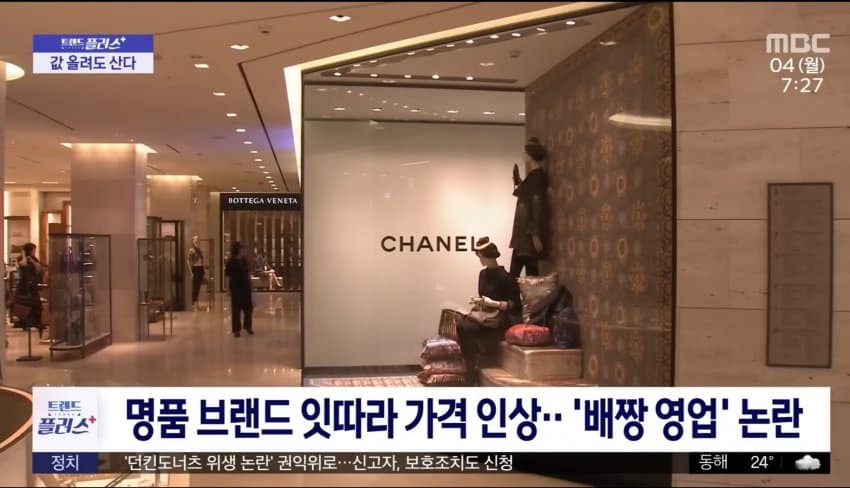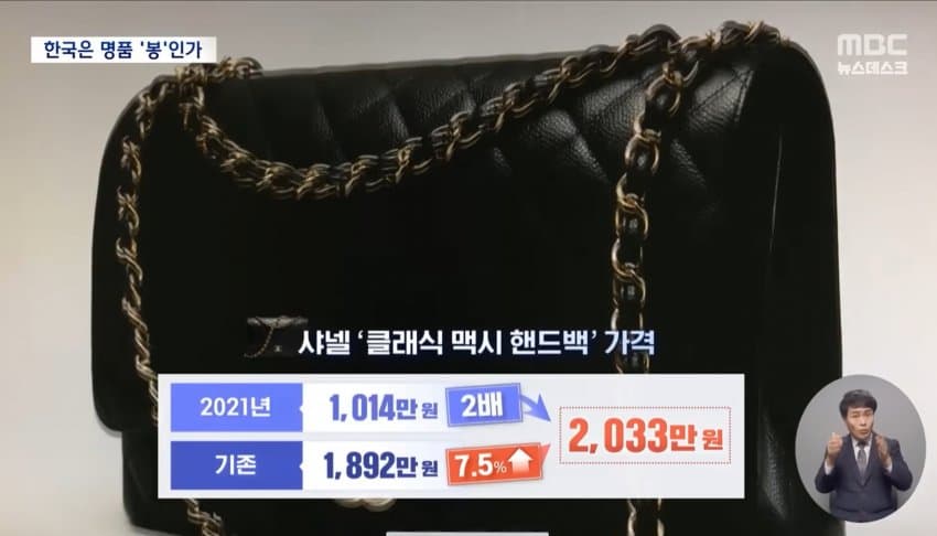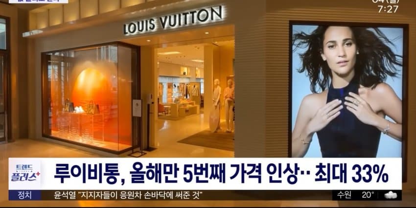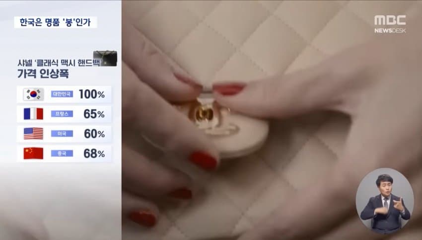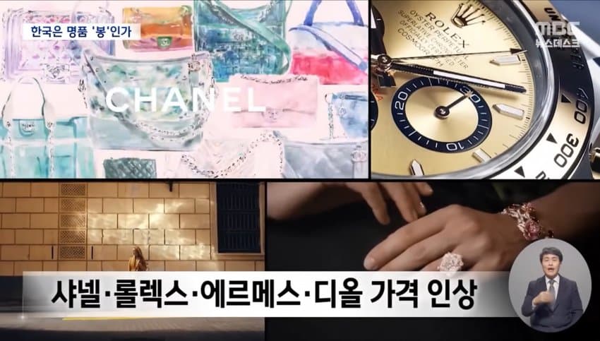 한국이 다른 나라들보다 샤넬, 루이비통, 롤렉스, 디올, 에르메스 등 주요 명품브랜드들의 가격 인상폭이 제일 높았다.