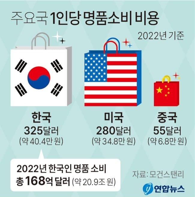2022년 1인당 명품구매율에서 이미 미국따위는 제친지 오래