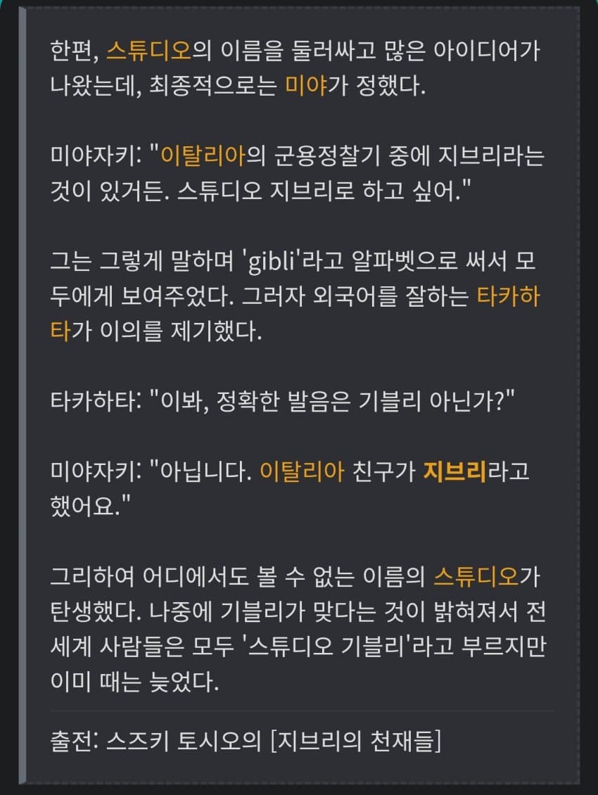 기블리라고 지인들이 정정해줘도 아무튼 지브리가 맞스므니다 ㅇㅈㄹ하고 우긴 게 레전드 ㅋㅋㅋㅋㅋ