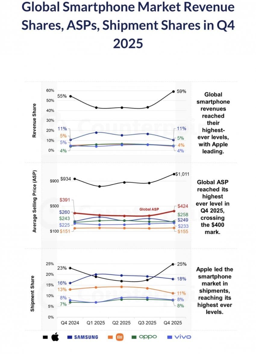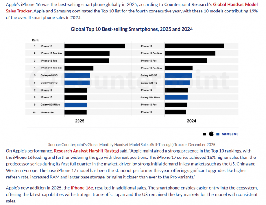 그리고 2025년 제일 잘 팔린 스마트폰 랭킹을 보면