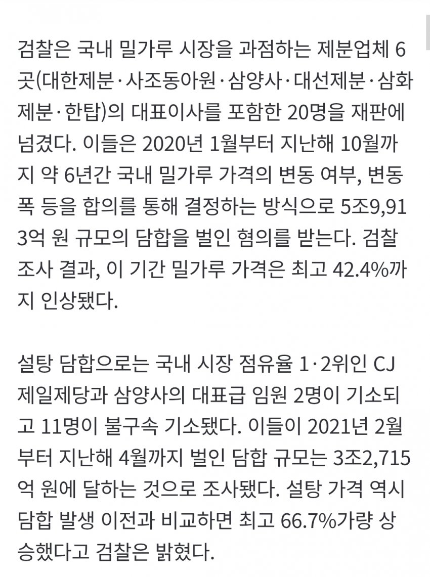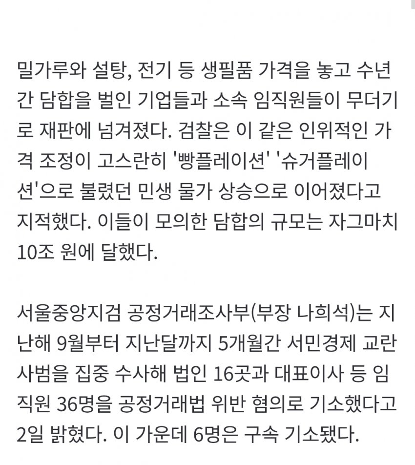 '빵플레이션' 이유 있었네설탕·밀가루·전기 담합 무더기 기소