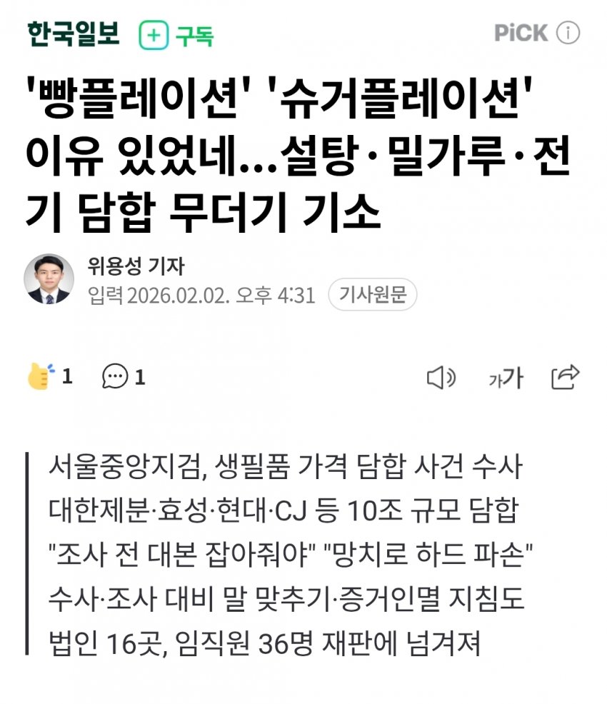 이럴줄알았다 ㅋㅋㅋㅋㅋ2010년대 들어서 이상할 정도로 빵값 지랄난게 어이없었는데 담합을 하고 있었노
