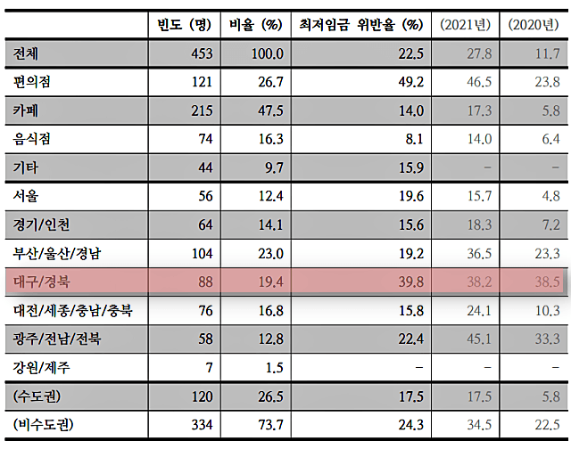 ??:통궈새끼 5인 미만 영세 사업체 중에 대구가 최저시급 제일 안준다는게 문제지 논점 흐리네 ㅉㅉ 청년들 다 죽는다