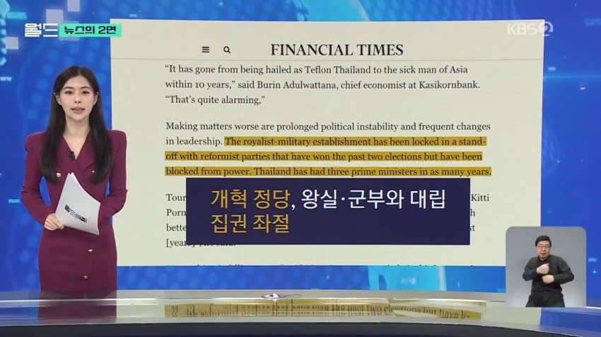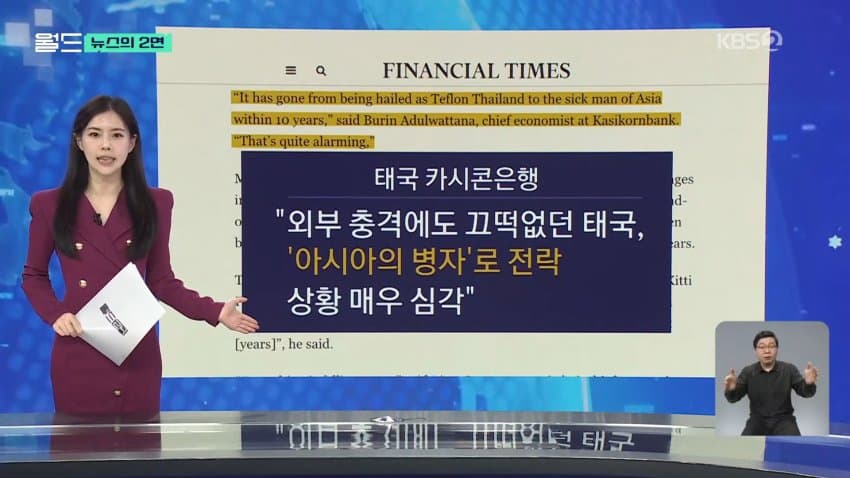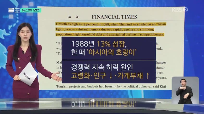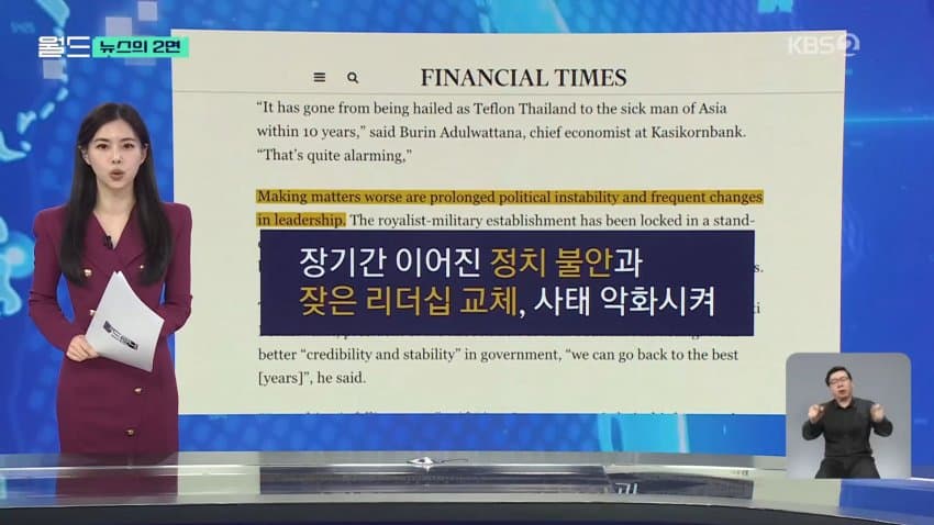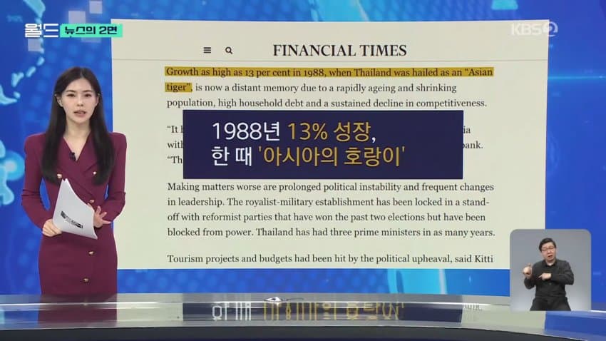 파이낸셜타임스가 태국이 어쩌다 '아시아의 병자'가 됐는지 다루는 기사를 작성함