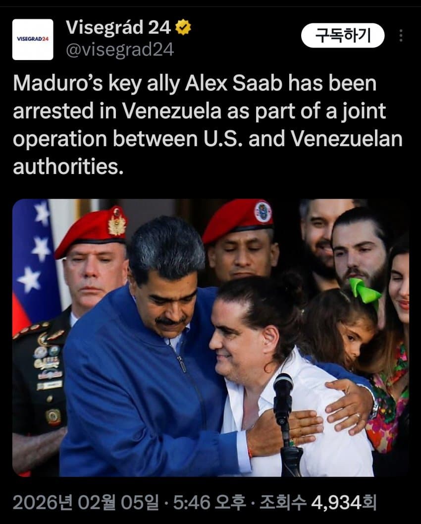 알렉스 사브가 미국과 베네수엘라 당국 간의 합동 작전의 일환으로 베네수엘라에서 체포되었다노ㅋㅋㅋㅋㅋㅋㅋㅋ