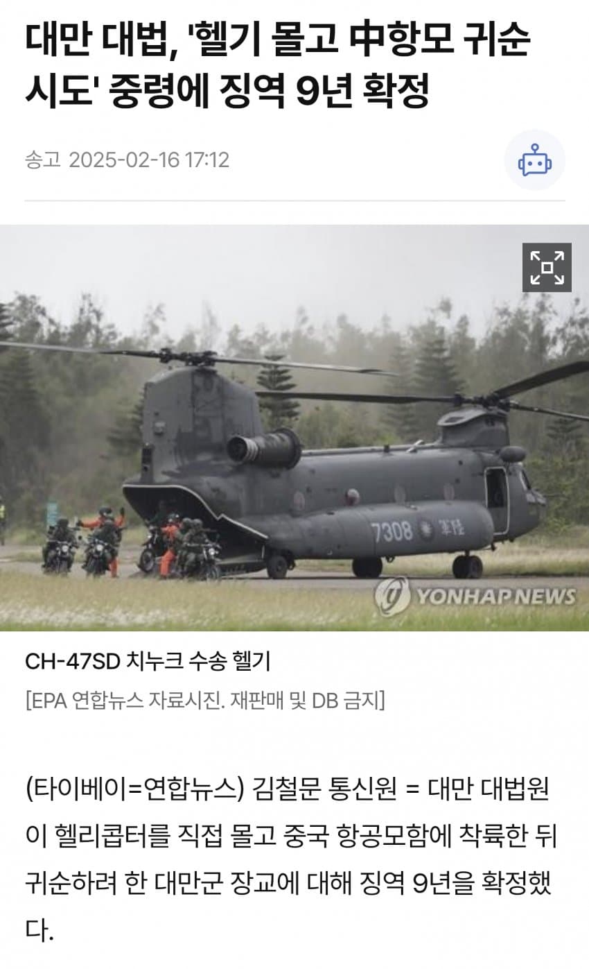 헬기 째로 중국에 귀순하려던 대만군 장교 (중령)