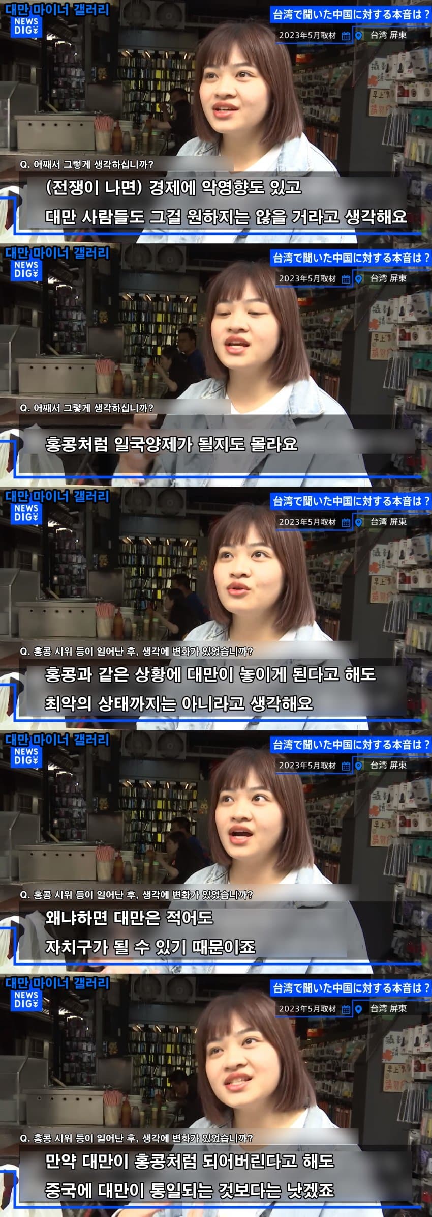 전쟁하느니 차라리 홍콩처럼 자치구가 되는 게 낫다는 대만 여자