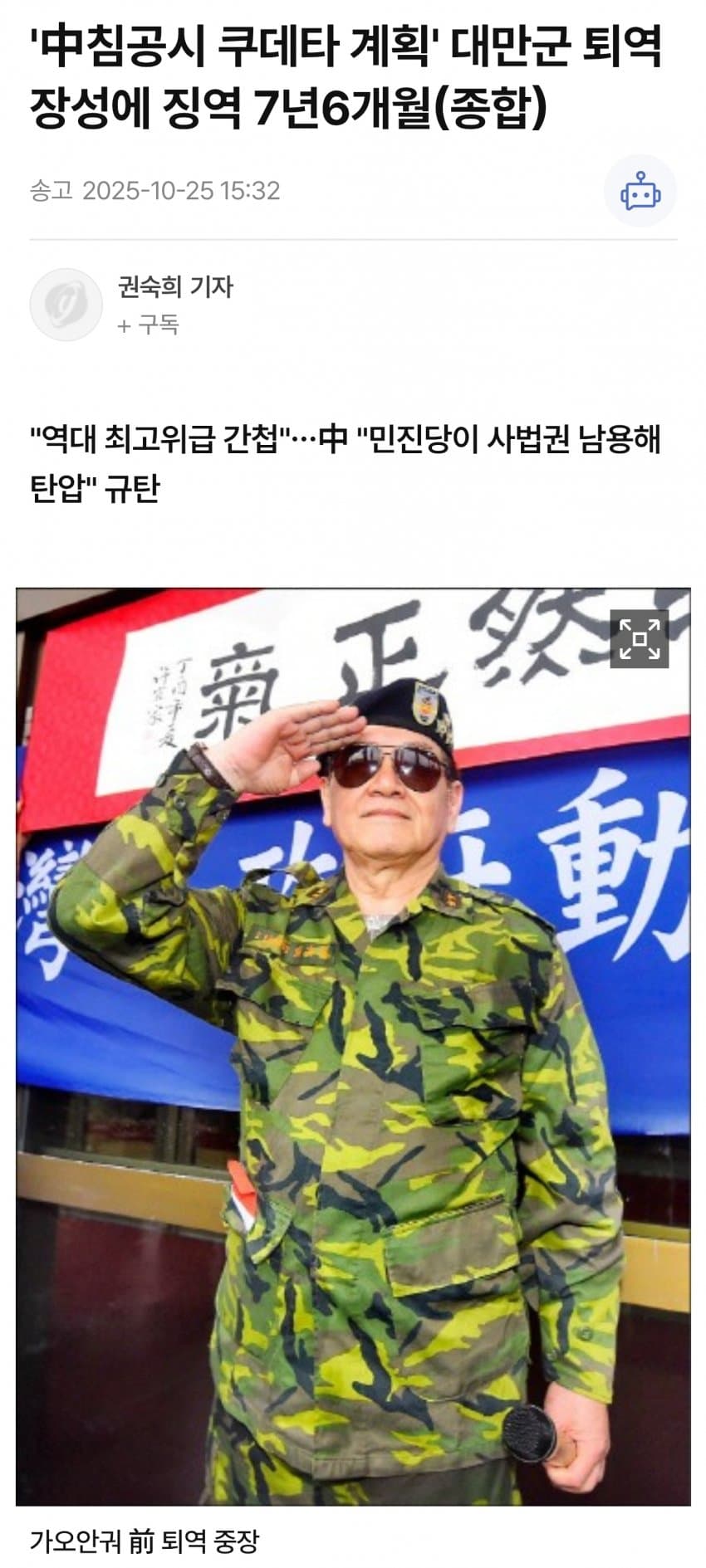 중국이 침공해오면 쿠데타 일으켜 동조하려던 대만 장군 (중장)