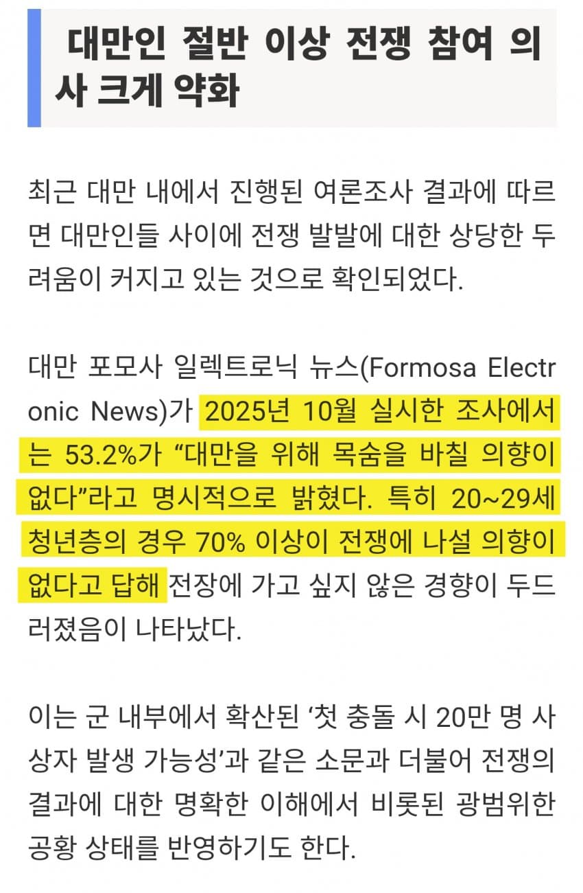 전쟁 직전 중국이 귀화 기회를 주면 전부 중국으로 튈 거라는 대만 현지인들
