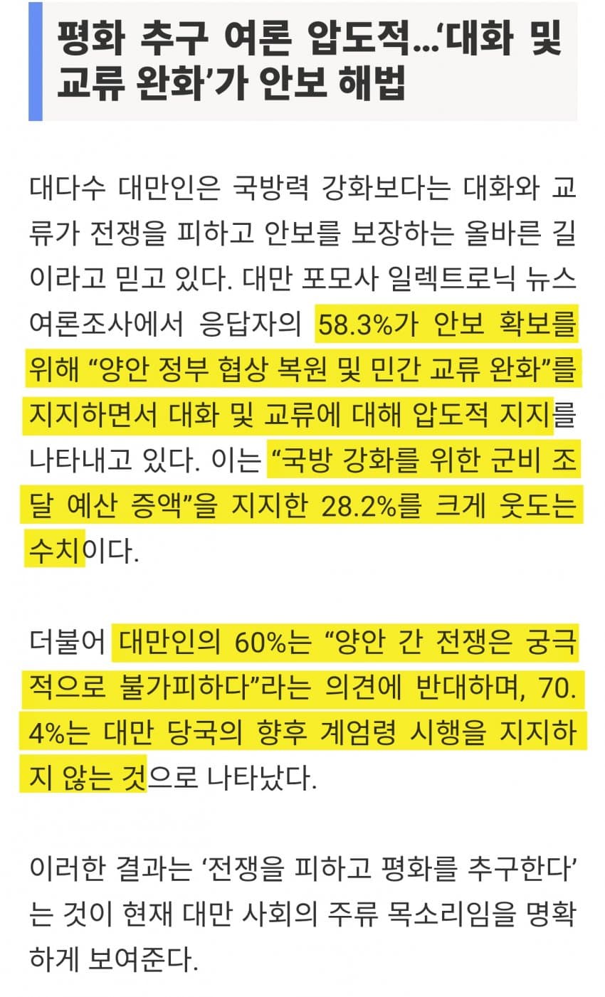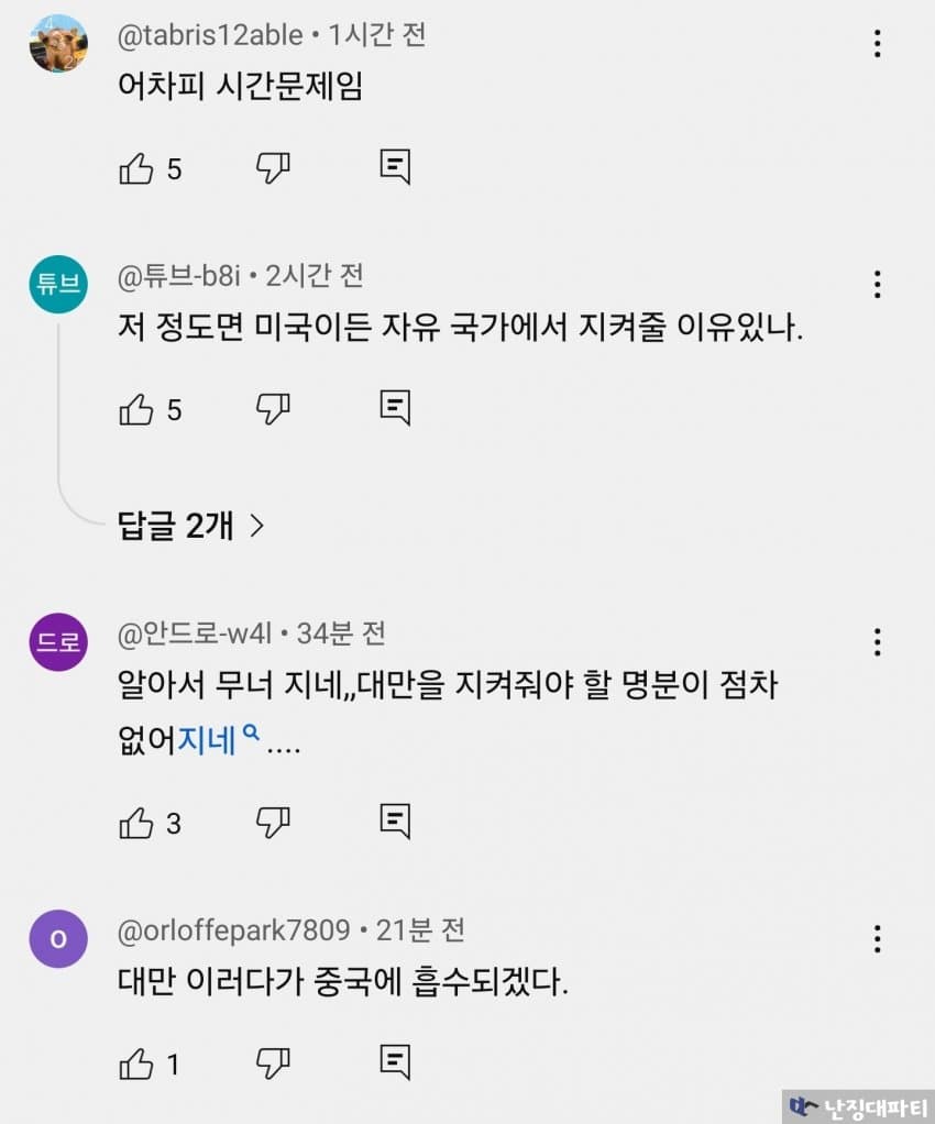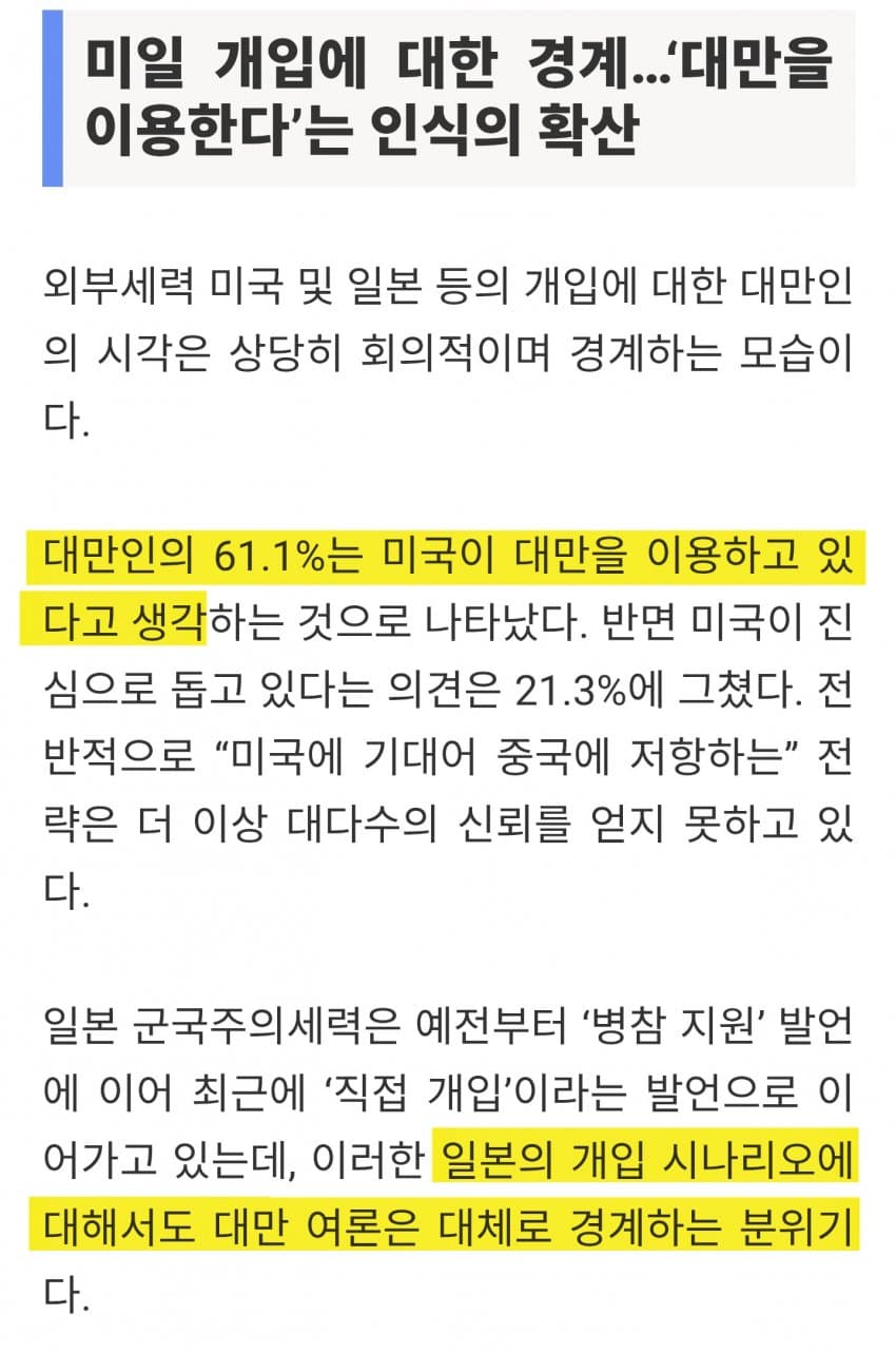 대만성 주민들 : 미국에 기대어 중국에 저항하지 않겠다