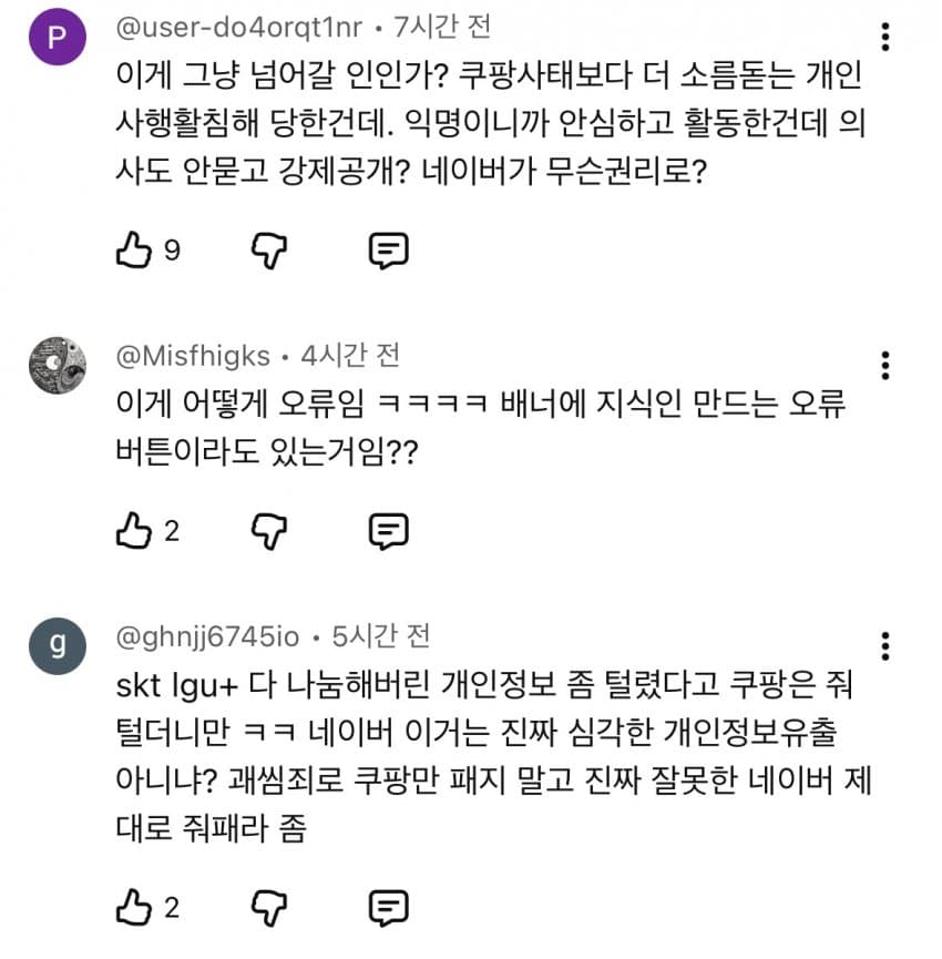 이거 사실상 개인정보유출 아니냐 빨리 청문회 해서 이해진이 잡아다 호통치고 네이버 영업정지 시켜야지 ㅋㅋㅋㅋㅋㅋ