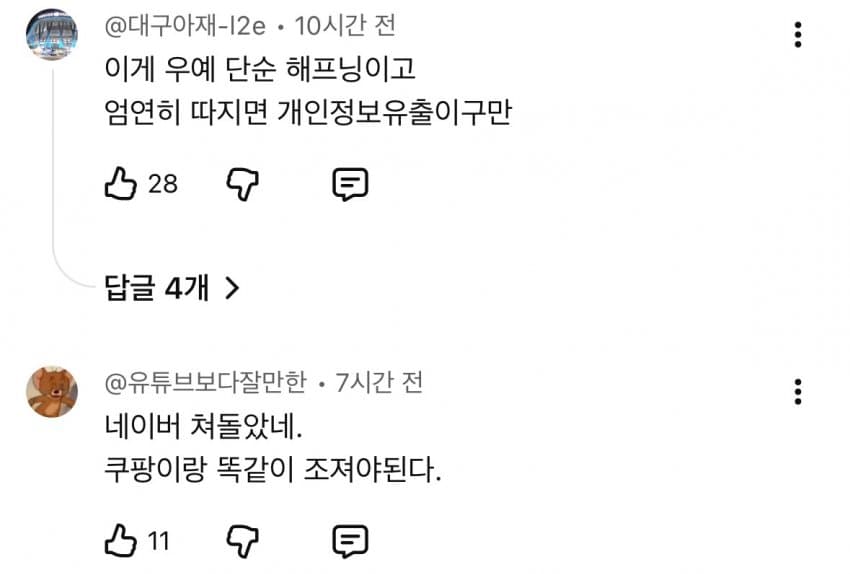 쿠팡보다 저게 더 큰거 아니냐 ㅋㅋ 익명으로 글쓴게 털린건데 ㅅㅂ ㅋㅋㅋ