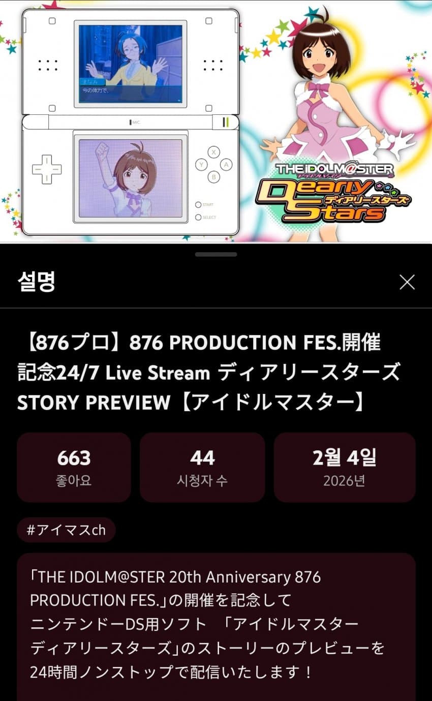2009년 ds로 출시한 아이돌마스터 디어리스타즈