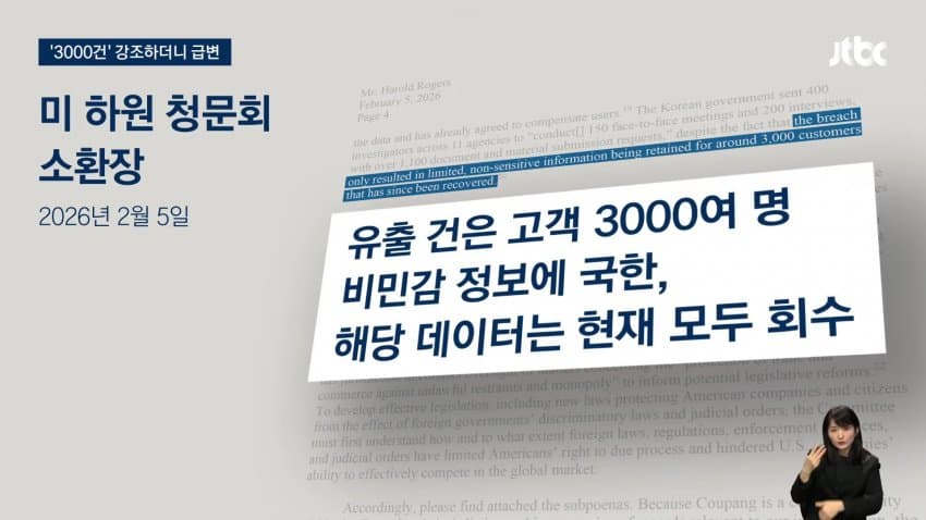 심지어 쿠팡 청문회를 열기로 한 미국 하원이 보낸 해롤드 로저스 쿠팡 대표 소환장에도 '유출 규모는 3000건'이라고 적시돼 있음