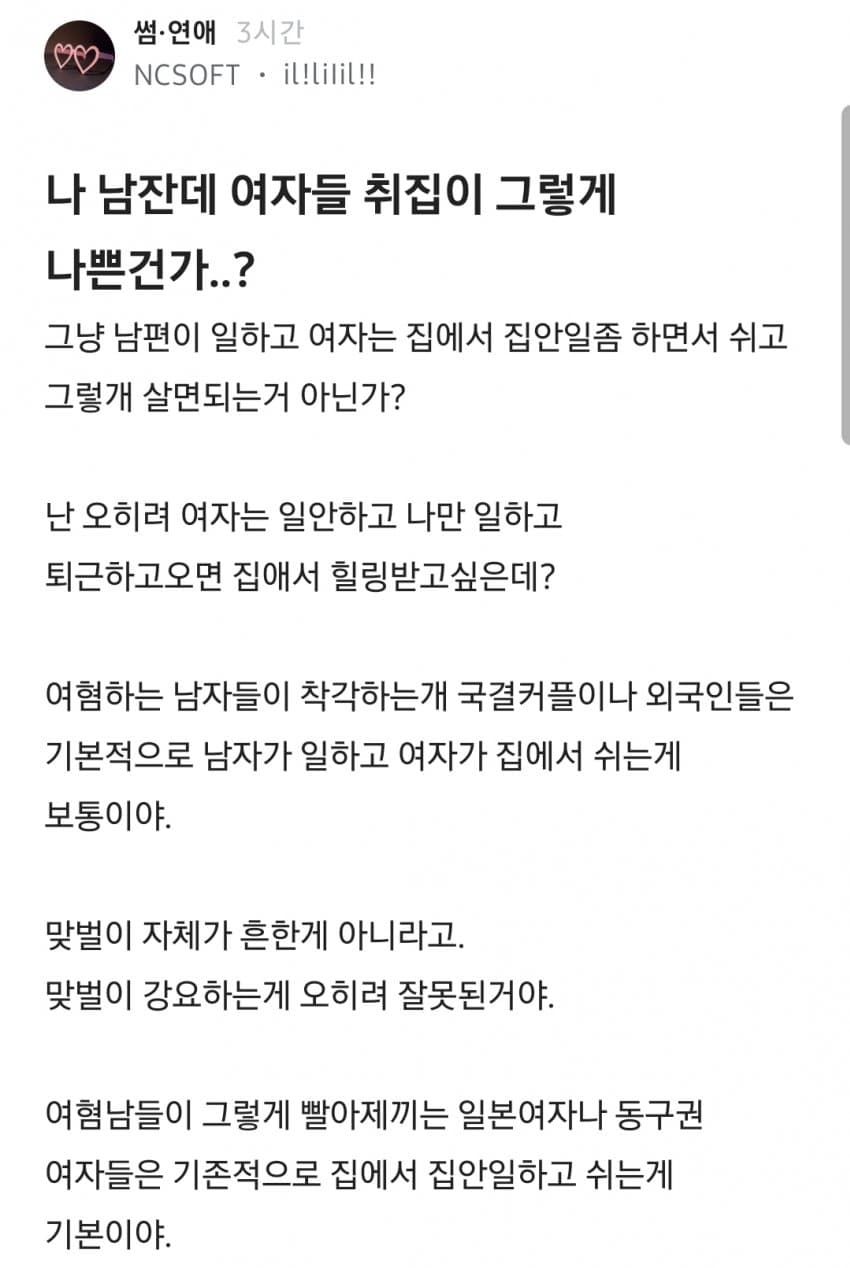 '나는 남잔데' 맞벌이에 왜 긁혔노? ㅋㅋㅋㅋㅋㅋㅋㅋㅋ