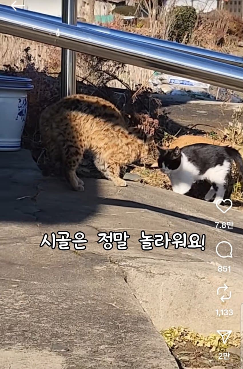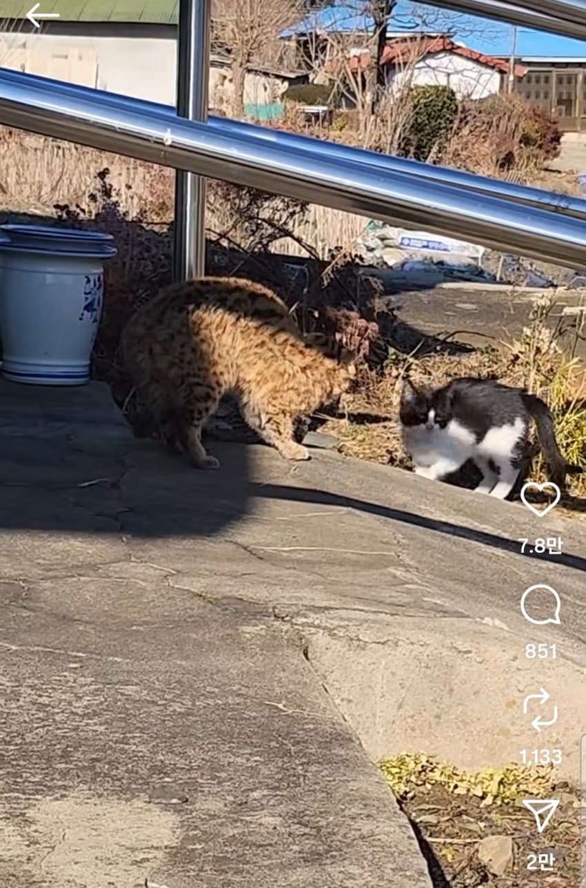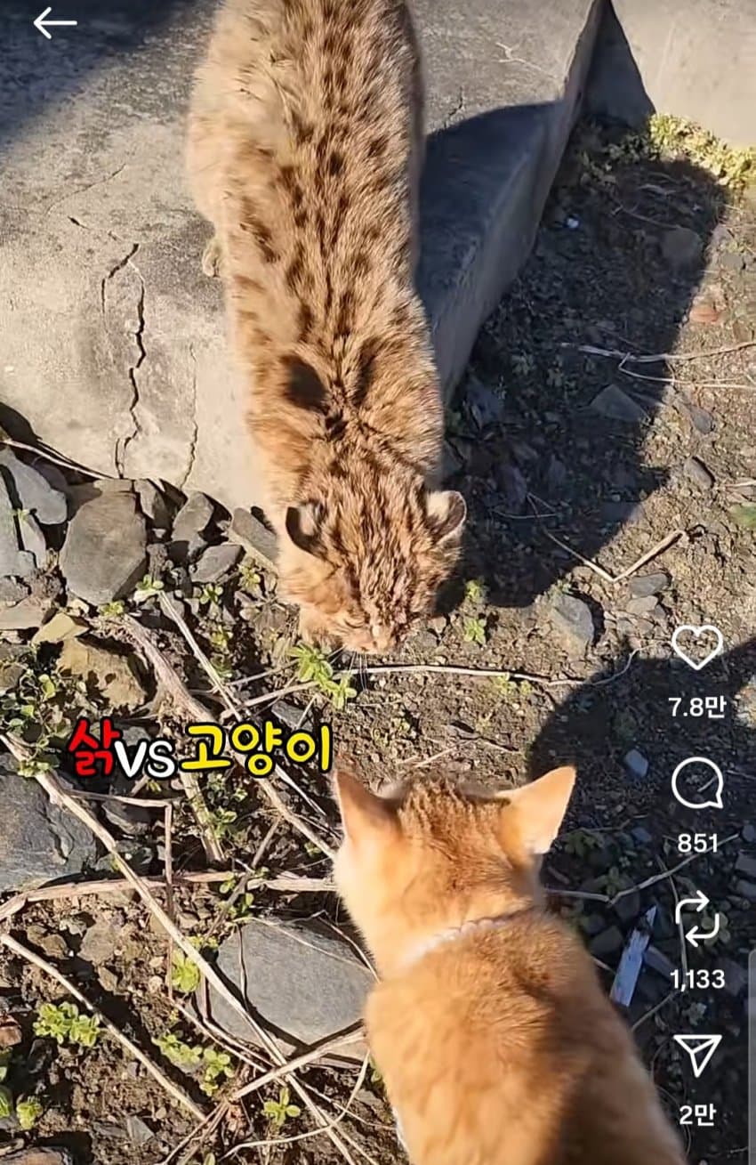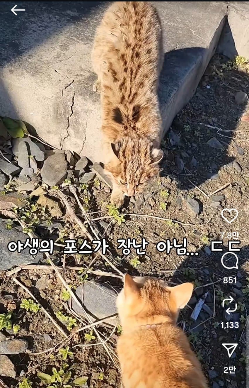 삵이나 서벌 같은 고양이과 동물이랑 고양이랑 눈도 못 마주친다함 ㅇㅇ