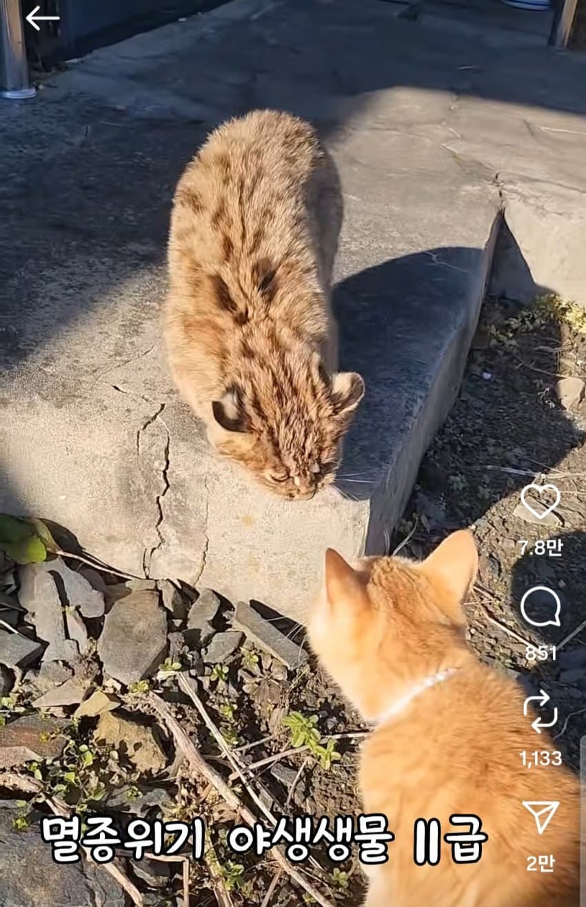 삵이랑 들고양이랑 섹스해서 잡종이 창궐하고 야생 삵은 멸종 예정