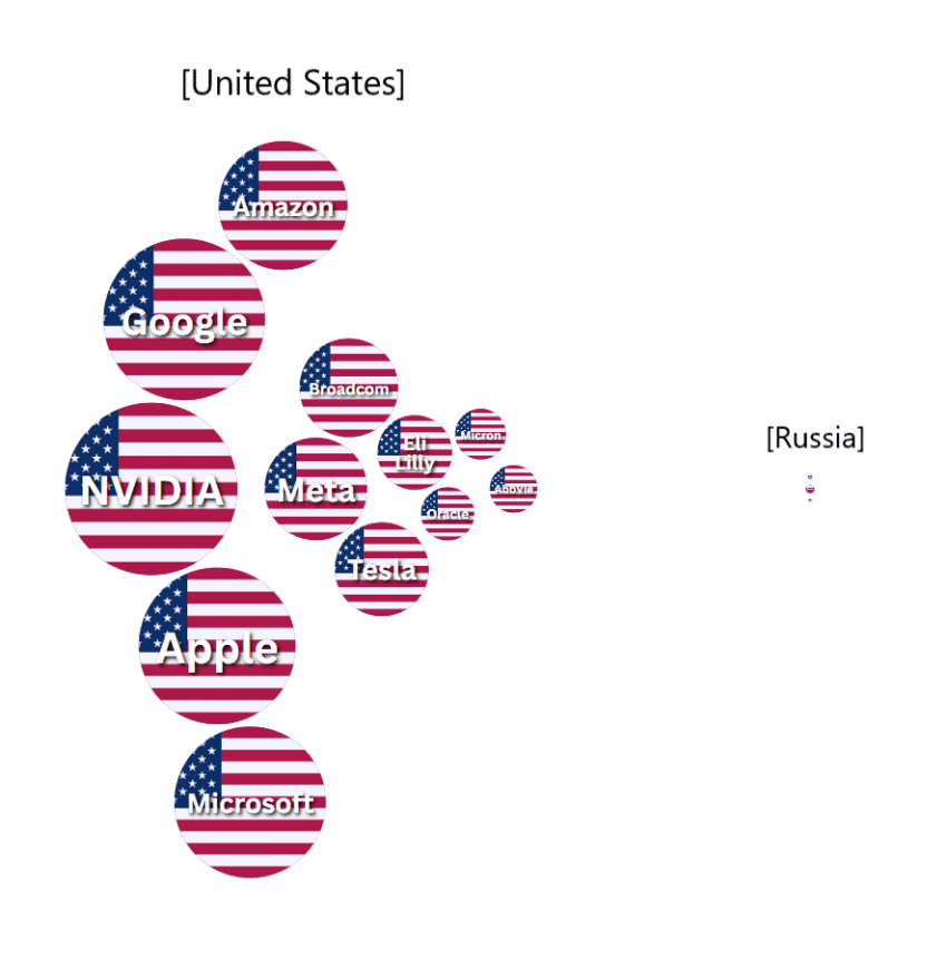 미국의 빅테크 기업들과 비교해보면 러시아는 그냥 글자자체가 사라짐