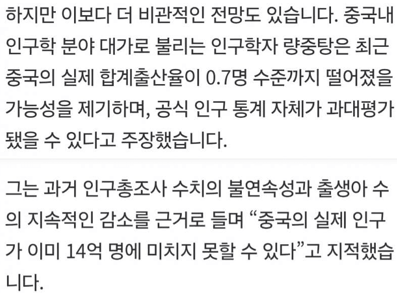 중꿔는 인구 줄어들어야지..14억..생각만해도 어질어질 하다..5억으로 줄어들어야 함..원래 국가는 3억 넘어가면 효율성이 떨어짐..미제도 3억 넘어가면 망조테크.