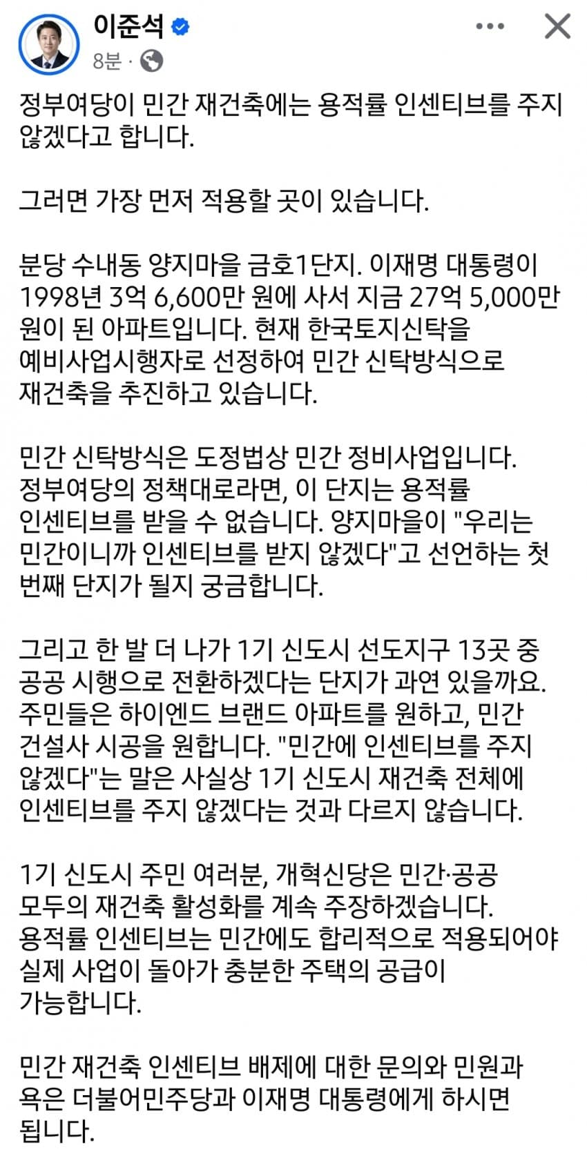 이재명이 하겠다는건 집을 팔라는 얘기가 아님팔사람은 팔되 안 팔사람들은 이후 있을 불이익은 알아서 감당하라는거지수준차이가 너무나니까 말귀를 못알아듣네