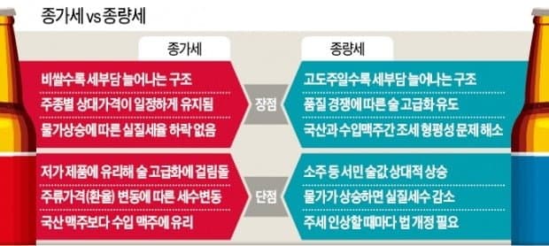 -종량세: 총 알콜량에 비례한 세금
