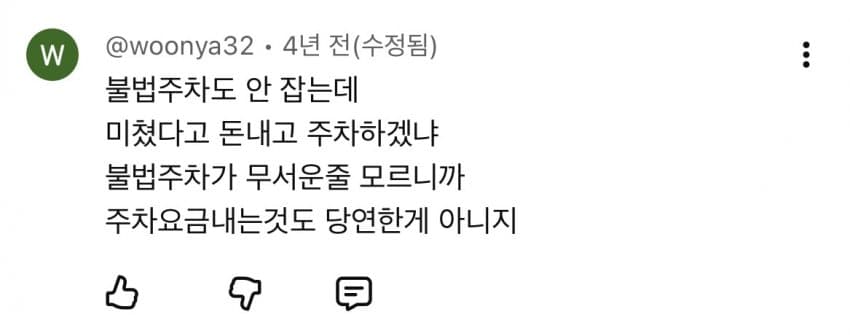 불법주차 걸리면 어지간한 주차장 월요금 몇배로 나오게 해야지 안대지 ㅅㅂ불법주차 잡지도 않는 거 잡혀도 주차장 요금보다 싸면 주차장에 돈내고 내는 게 븅신이지