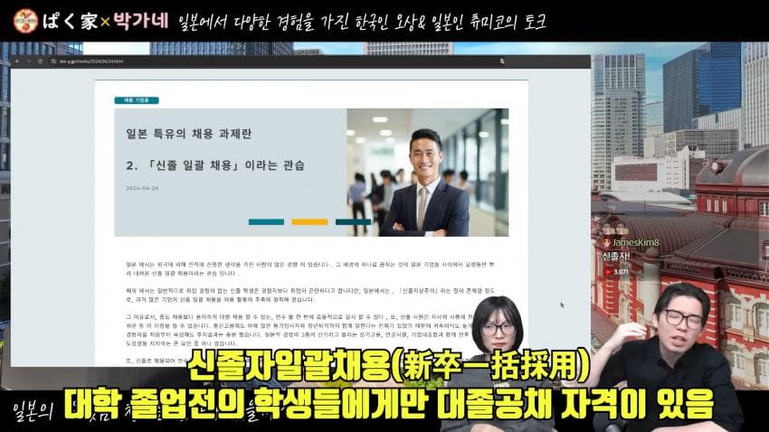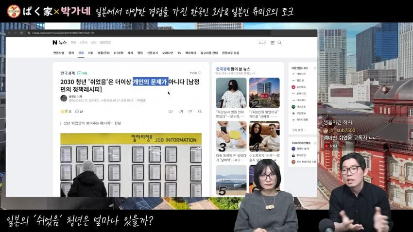 저렇게 똑똑하고 일본의 모든 문제를 속속들이 아는데다 군대도 갔다와서 부인을 한국으로 데려와서 살아도 아무 문제없는 사람이 왜 한국에 안살고 일본 사는걸까 ㅋㅋ