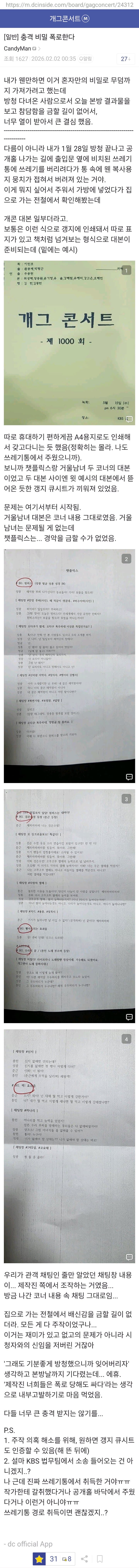 한물간 개콘 보러가는 사람이면 찐팬일텐데 더 나락으로 가게 생겼노 이제 웃음기 싹 빼고 엄근진하고 대본퀄리티 체크해야지
