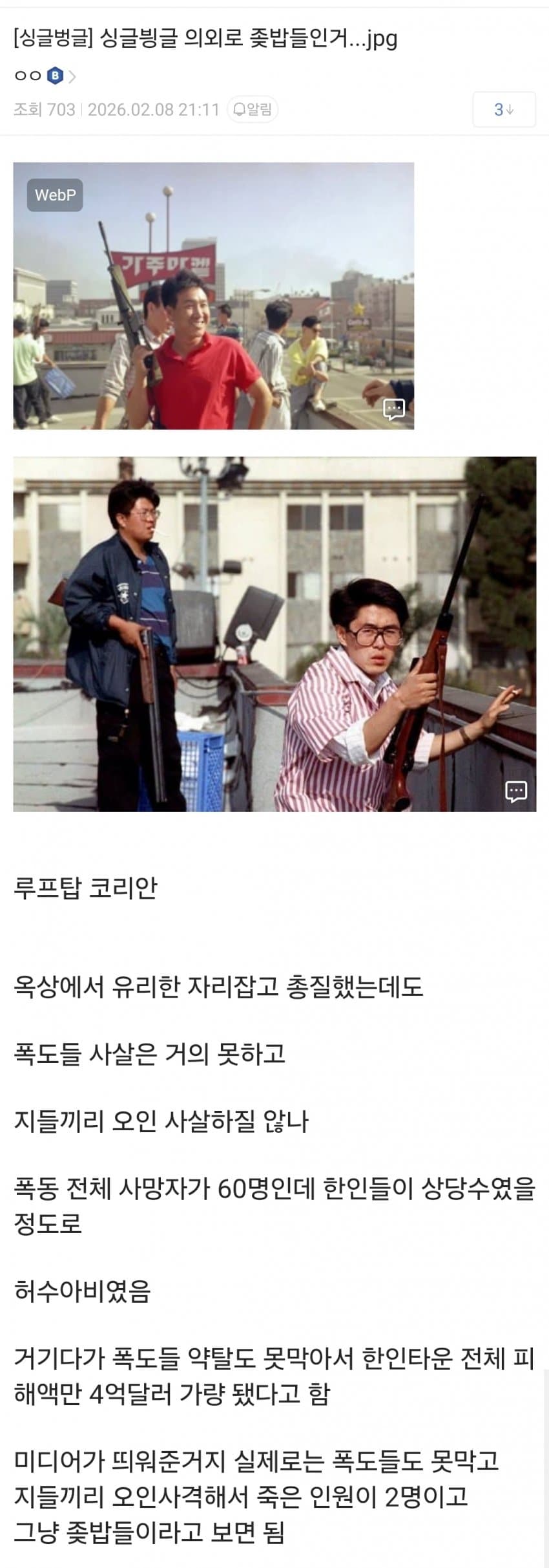 그러니까 루프탑 코리안이 폭도 많이 못죽였으니까 좆밥이다