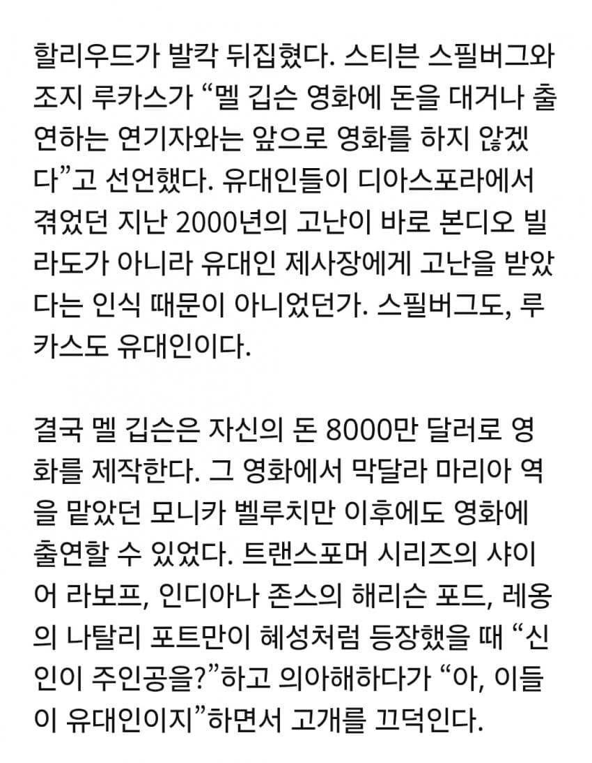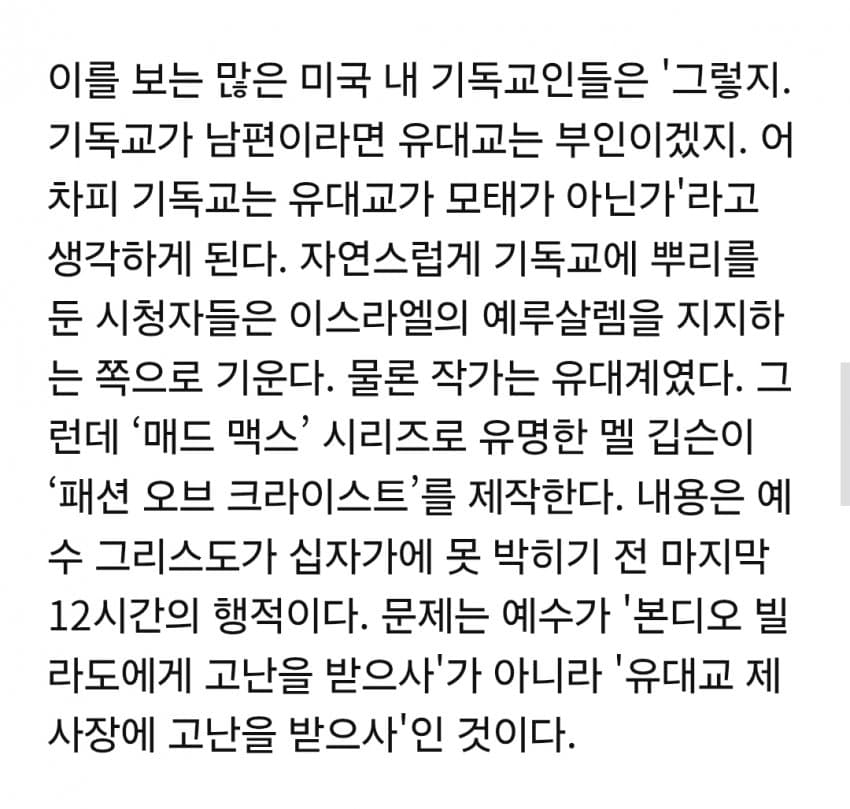 멜 깁슨이 패션 오브 크라이스트(예수 고문하는 하드코어 BDSM 내용임)를 만들때 반유대주의적이라고