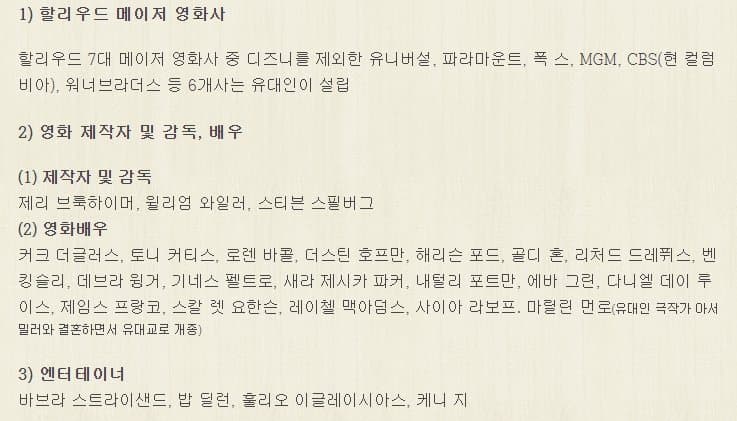 헐리우드 메이저 영화사 7곳 중 6곳은 유대인이 창립한 것이다