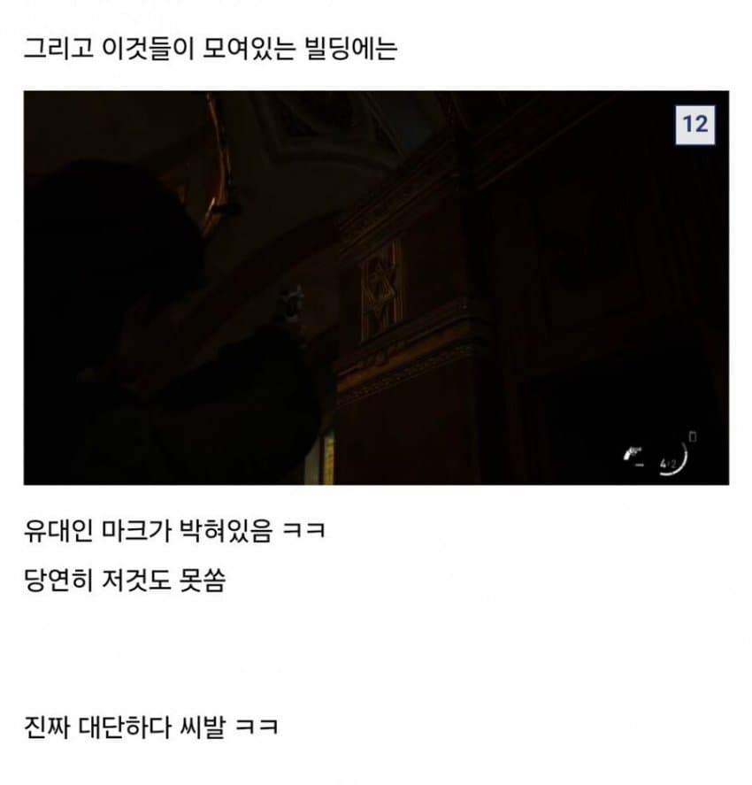게임 산업에서도 유대인 상징물은 총으로 못 쏠 정도로 유대인은 성역화 되어 있다