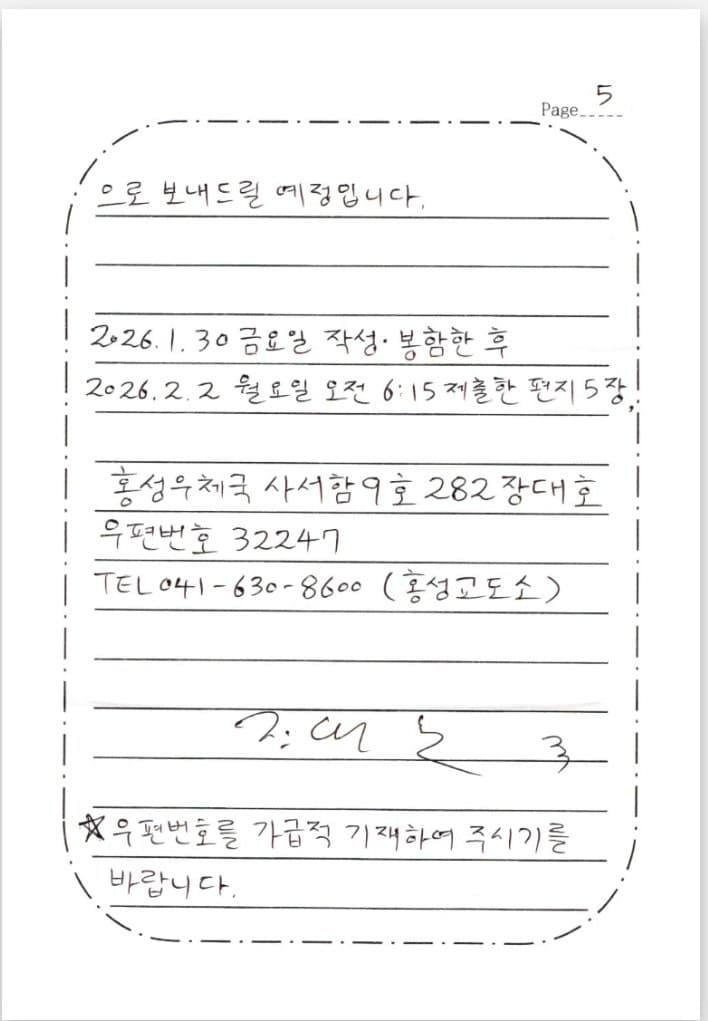 5. 징역 썰은 2월 중으로 장문의 편지 다시 보내드림