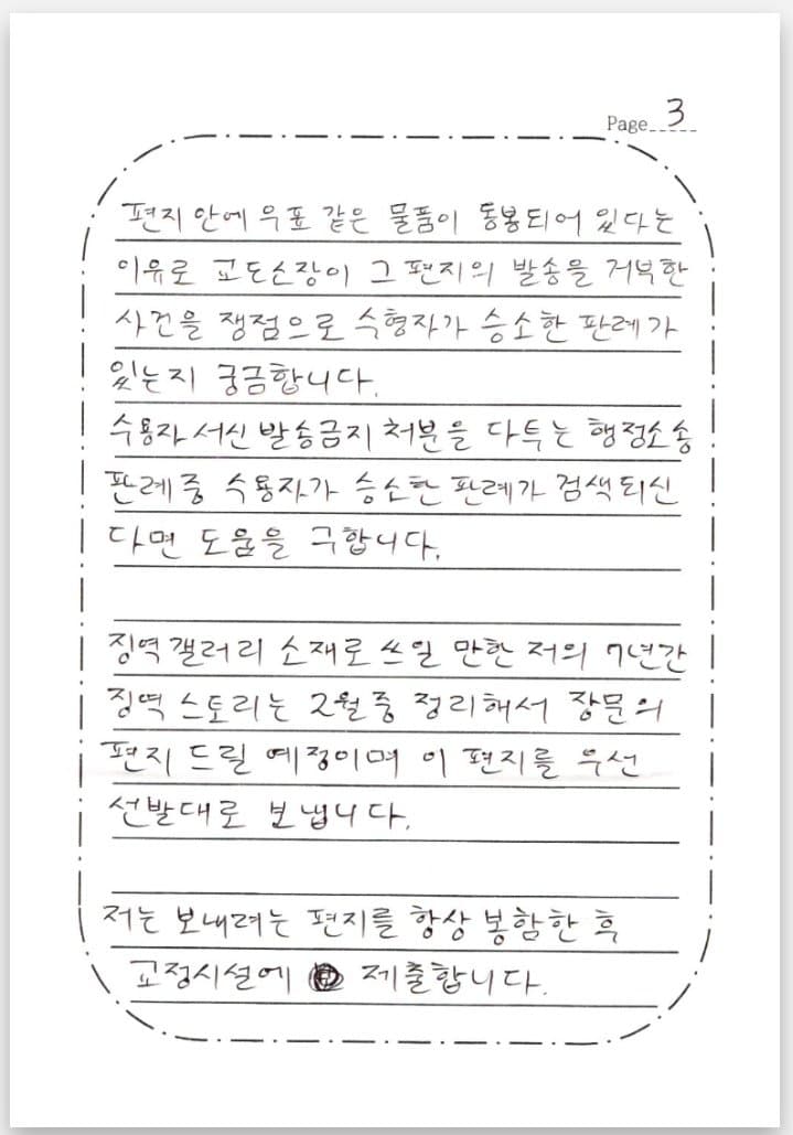 2. 요즘 감옥안에서 부당한 대우에 대해서 행정소송 존나 난사하는중이다.