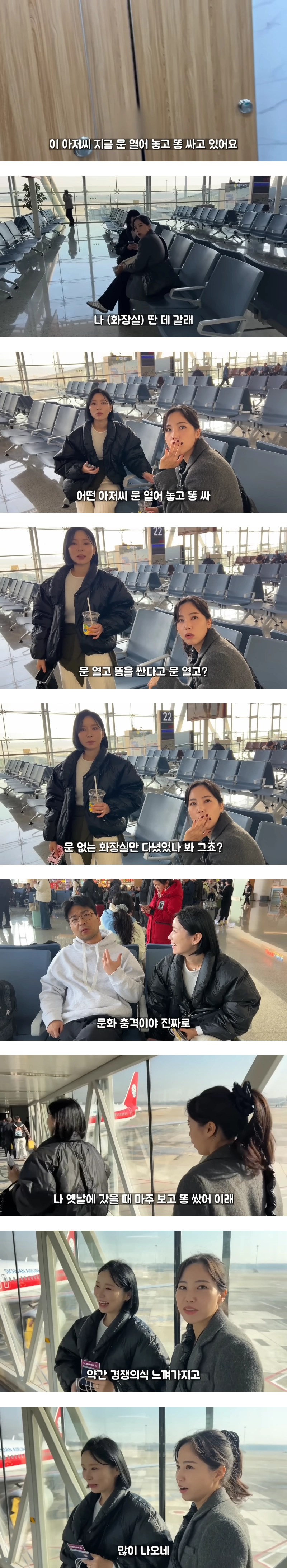 문열고 마주보면서 싸진 않음 그리고 맛난거 많이 먹고 사는데 양치도 잘하고 몸도 하루 두세번씩 씻음놀랐지?