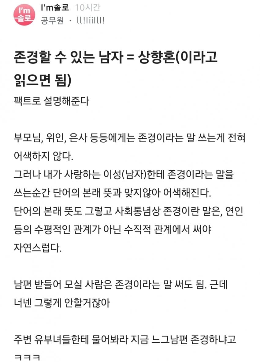 존경맞음? 그냥 존중하는거지 현실타협해서 페미표독 안부리고 조용히 살면서