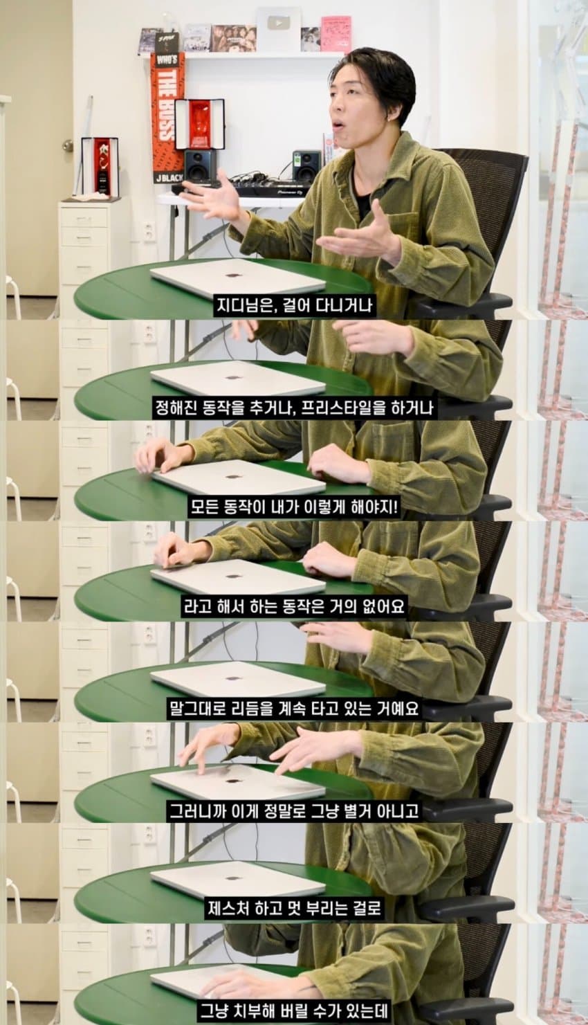 지디 노래나 표정이나 행동이 과장되고 손발 오그라드는건 있는데그럼에도 독보적인건 일반 아이돌들은 무대에서 백댄서 춤을 춤.즉 안무 외워서 추는거에 비해 지디는 지 나름대로 티를 내더라.제이블랙이 박자밀어서 탄다고 하는게 그런 부분임가수가 라이브할때 애드립으로 바이브타는거랑 비슷한 맥락임대부분 아이돌 특히 현재 아이돌은 대부분 이게 안됨