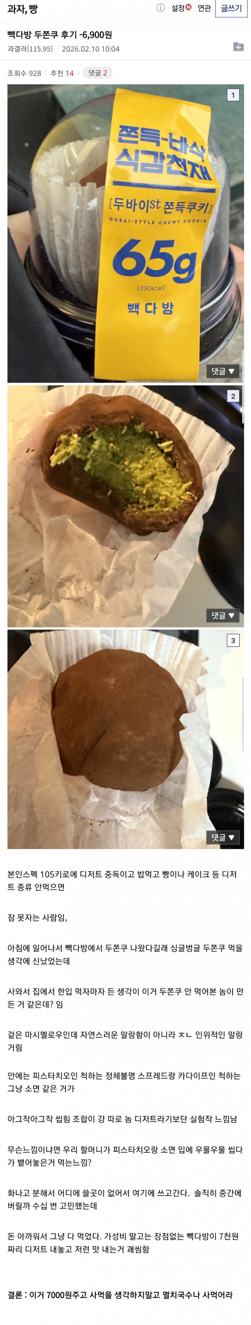 펌) 과자갤러의 빽다방 두쫀쿠 후기