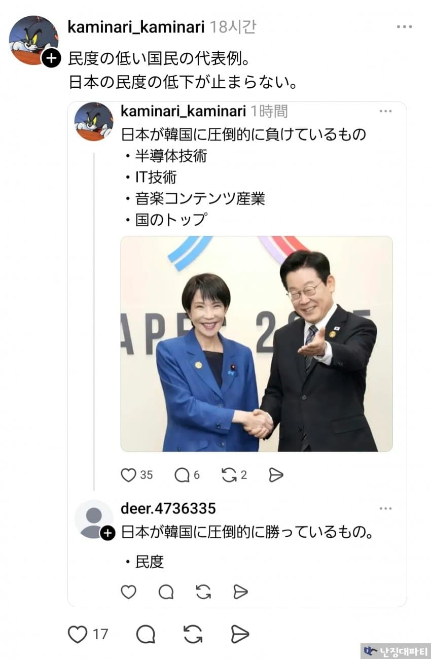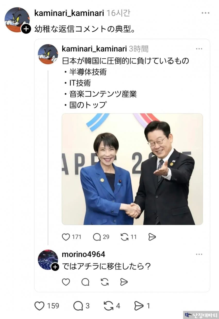 등등 자꾸 개소리하는 쪽우익들이 몰려오자 답글을 달며 반박하던 kaminari_kaminari