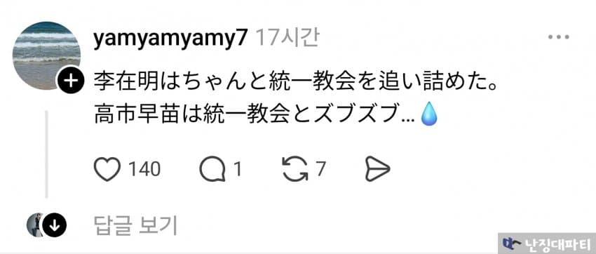 반면 다카이치 사나에는 통일교와 질척질척...