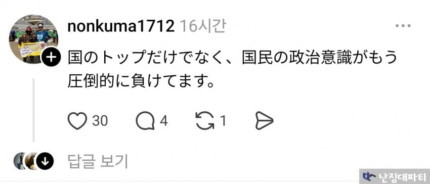 나라의 정상뿐만이 아니라, 국민의 정치의식이 이미 압도적으로 지고 있습니다