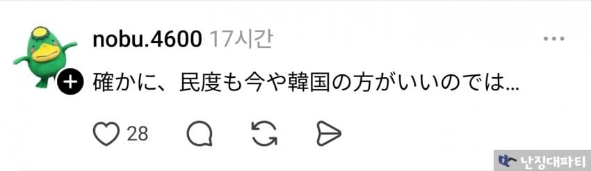 이렇듯 수많은 일본인들이 한국에 압도적으로 지고 있다는 글에 동조하는 답글을 남기는 모습임