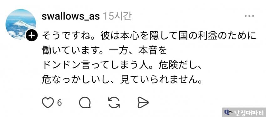 그렇네요. 그(이재명)는 본심을 숨기고 국가 이익을 위해 일하고 있어요